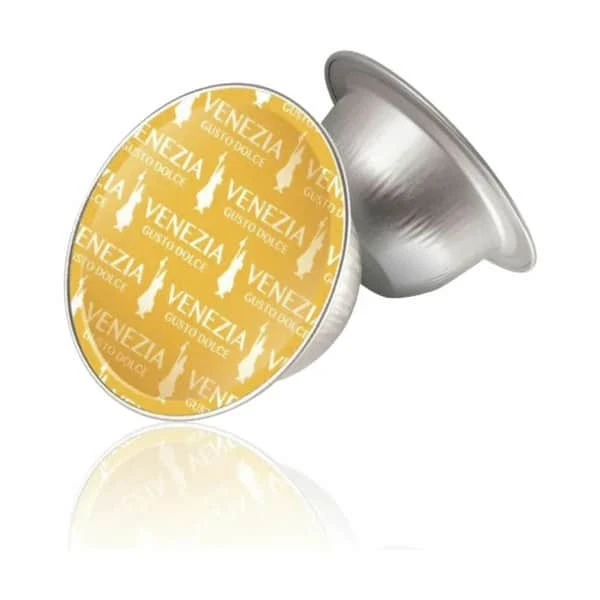 Bialetti espressokapslerne er specielt udviklet til Bialetti kapselmaskiner. Venezia kaffen er karakteriseret med en syrlig krop, med noter af krydderier og afrundet med en naturlig sødme af vanilje. Venezia er en mild espresso med styrke 7, der er lyst ristet med en spændende fyldig smag. Blendet er sammensat af 80% Arabica 20% Robusta bønner. Hver kapsel indeholder 7 gram espresso, som er minimum mængden for brygning af en kop kaffe.