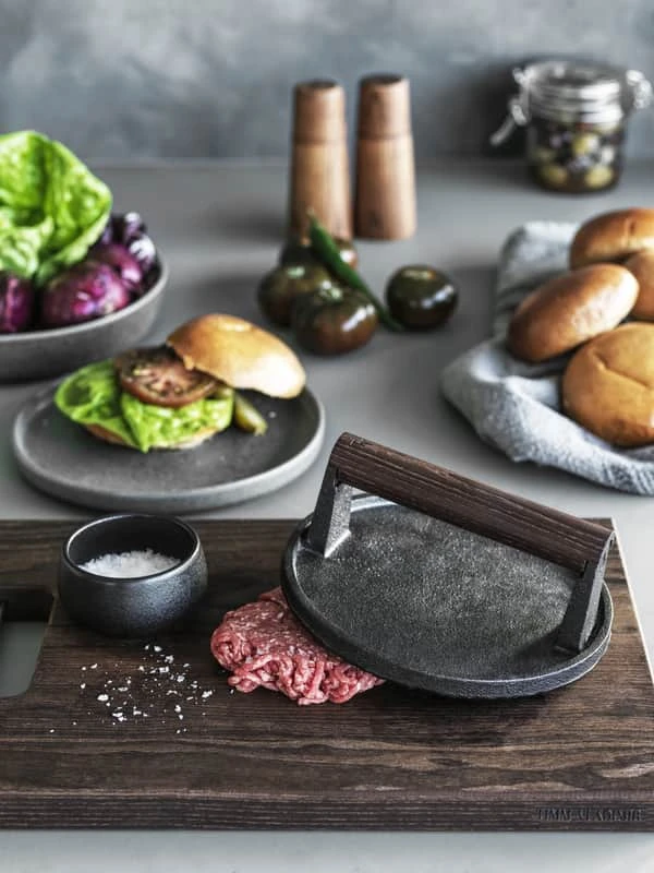 Elsker du at spise en lækker hjemmelavet burger? Så er burgerpresseren fra Timm Vladimir Kitchen lige noget for dig – tryk og hold din bøf flade under stegningen og voila – så har du en flot og rund bøf.