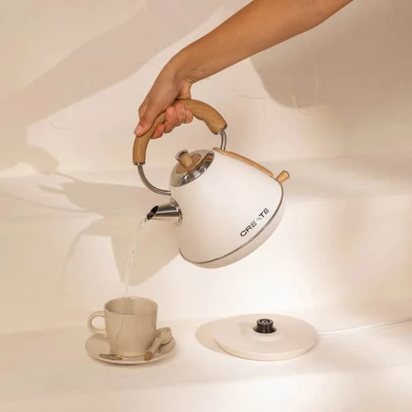 Med denne retro elkedel fra Create kan du varme op til 1,7 liter vand på kun 3 minutter! Med dens unikke retro design er den ikke kun praktisk, men også en flot tilføjelse til dit køkken. Derudover har den et smart sikkerhedssystem, der slukker for kedlen, hvis den løber tør for vand.