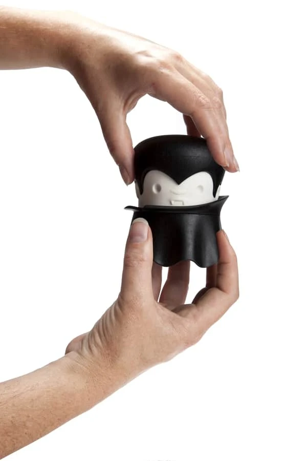 Knus hvidløg med hjælp fra Dracula ham selv. Fyld holderen med hvidløg og sæt hovedet på. Når du drejer vil hvidløget knuses og når du tager hovedet af, er hvidløget klar til brug.