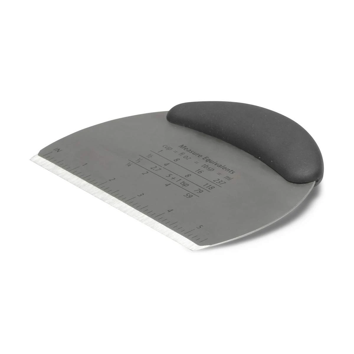 Funktionel og slidstærk dejskraber af rustfrit stål. Perfekt til både at dele dejen i mindre stykker eller blot til at skrabe bordet rent med. På den ene side er der en tabel med måleenheder samt praktiske mål i cm og tommer. Tåler maskinopvask.