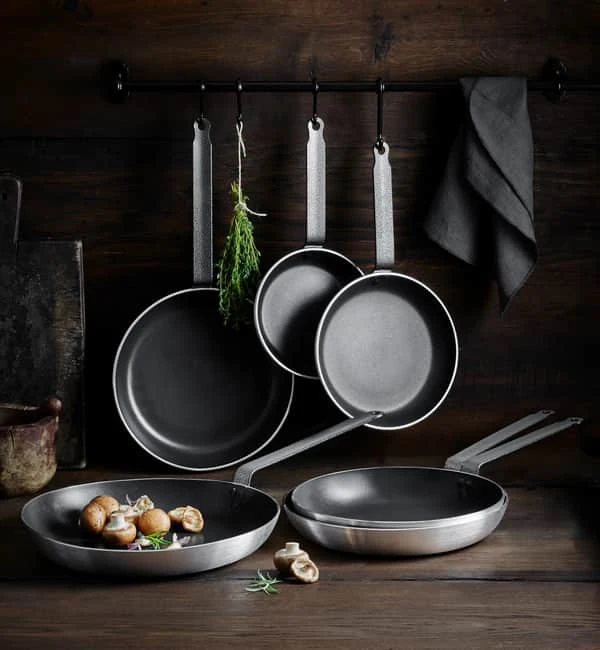 Rhinen-serien fra Pillivuyt Gourmet er en serie med kvalitetsgrej skabt i aluminium. Det buede jernhåndtag på panden giver dig et godt greb, og den 4 mm tykke bund sikrer en god varmefordling.Panden skal vaskes op i hånden.