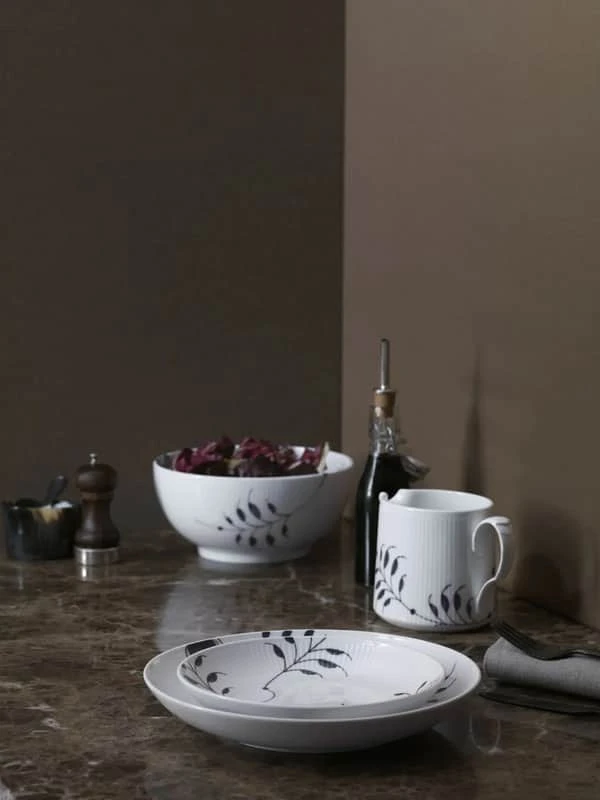Royal Copenhagen Musselmalet er et eksklusivt designerobjekt, der i den sorte Mega-udgave udfordrer det klassiske design.