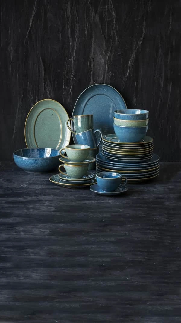 Stelserien Sofia fra CASA Living er alt, hvad du har brug for til hverdags- og festbordet. Hvert element i serien har reaktiv glasur og sit helt eget changerende farvespil, som skaber et unikt ydre, hvor ikke to elementer er ens. Du kan vælge tallerkener, skåle og fade, kopper og krus i smukke grønne og blå nuancer. Sofia stellet giver dig muligheden for at lege med en dynamisk og anderledes borddækning.