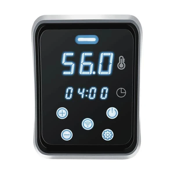 Sous vide-staven fra Steba har stor kapacitet og kræver en gryde med dybde på minimum 15 cm. Den kan varme 20 liter vand op til 56° C på blot 45 minutter og cirkulere 12 liter vand i minuttet. Et LCD-display viser temperatur og timerfunktion, så du let kan følge med i tilberedningsprocessen.