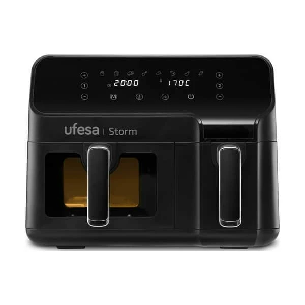 Med en Storm Double Airfryer fra Ufesa kan du tilberede to forskellige retter eller ingredienser på samme tid. Den har et mørkt moderne udseende som passer perfekt ind i netop dit køkken.